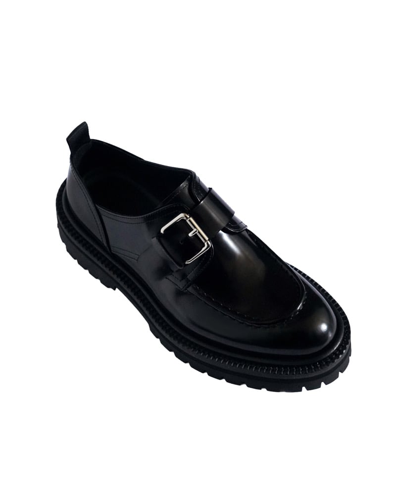 •Belt Buckle A contemporary take on the classic monk strap, featuring cow leather and a robust 3cm Rubber sole.